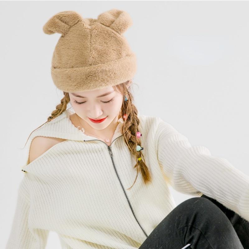 Новая шапка с кроличьими ушками для девочек, зимняя теплая шапка, берет, милая эластичная плюшевая шапка верблюд