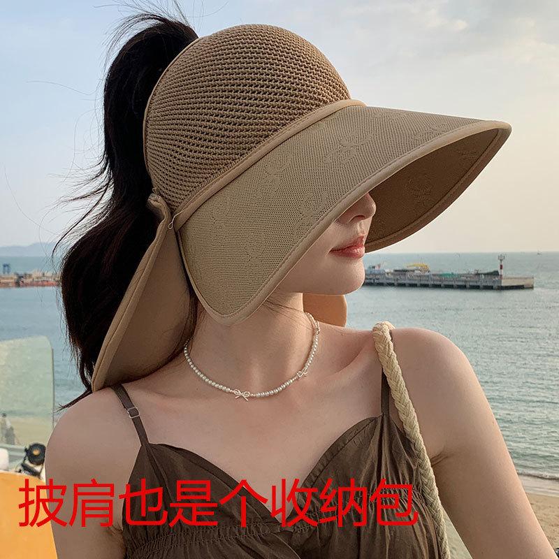 Новая шляпа от солнца с широкими полями, летняя шаль для защиты от УФ-лучей, шляпа с пустой макушкой, сумка для хранения, шляпа от солнца Average size 55--59 head circumference