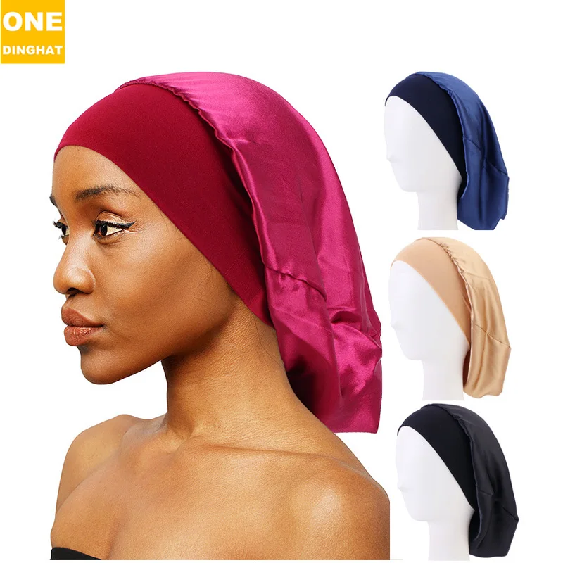 Новая эластичная широкополая длинная шапочка для душа однотонная Красивая термозащитная шапочка атласная длинная ночная шапочка