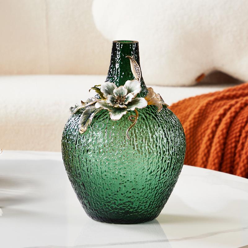 Новая эмалевая цветная легкая роскошная дизайнерская зеленая стеклянная ваза высокого класса, роскошное украшение