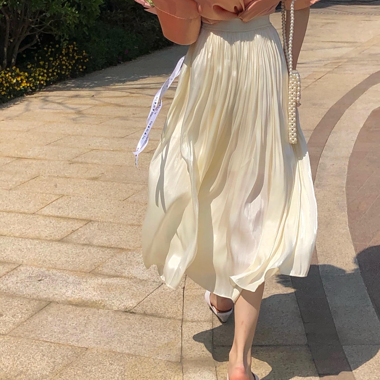 Новая 100 плиссированная блестящая шелковая блестящая юбка средней длины, утягивающая юбка-трапеция феи для похудения One size