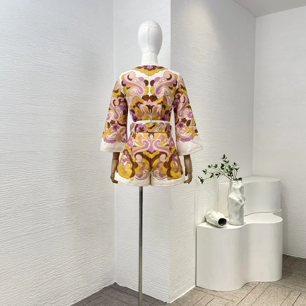 Новейшая коллекция 2023, качественная блузка с рукавом 3/4 и шорты с широкими штанинами и высокой талией