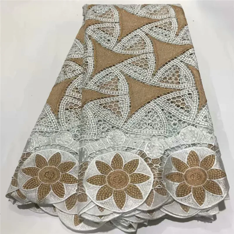 Новейшая нигерийская Водорастворимая кружевная ткань, 5 ярдов, Африканский гипюровый шнур, кружевная ткань с камнями, шнур, кружево для вече...