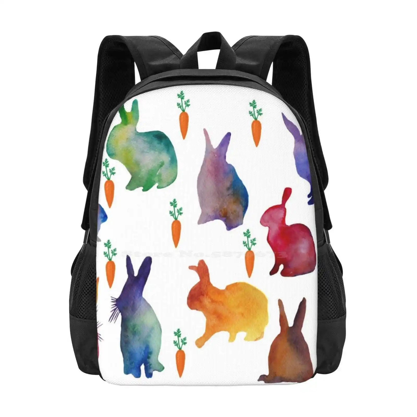 Rabbit's Heaven School Bags For Teenage Girls Laptop Travel Bags Watercolor Rabbits Carrots Happy Rabbits Spring Easter Rabbits