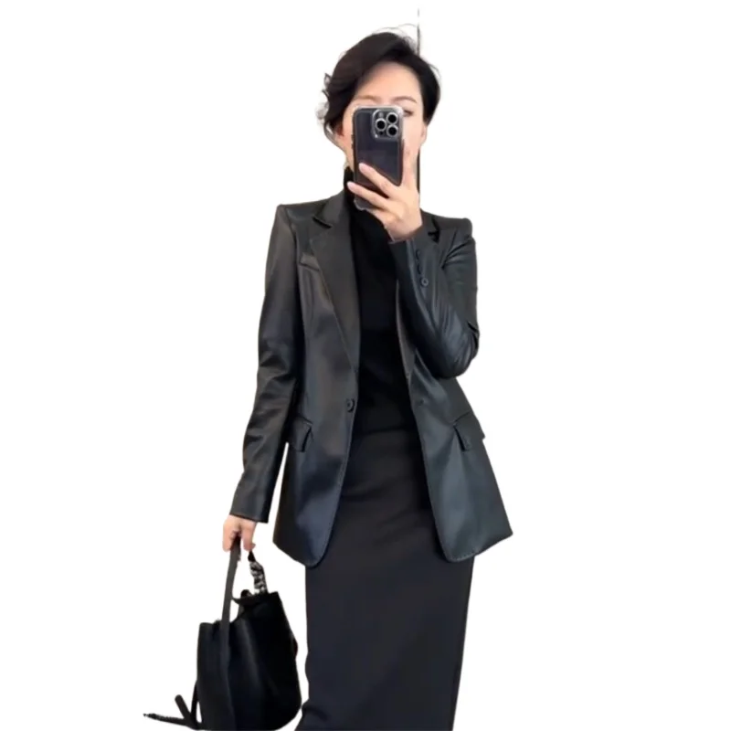 Maillard Senior Sense Celebrity Style Foreign Style Solid Color Coat Spring Explosion Fashion Temperament Leather Suit Women