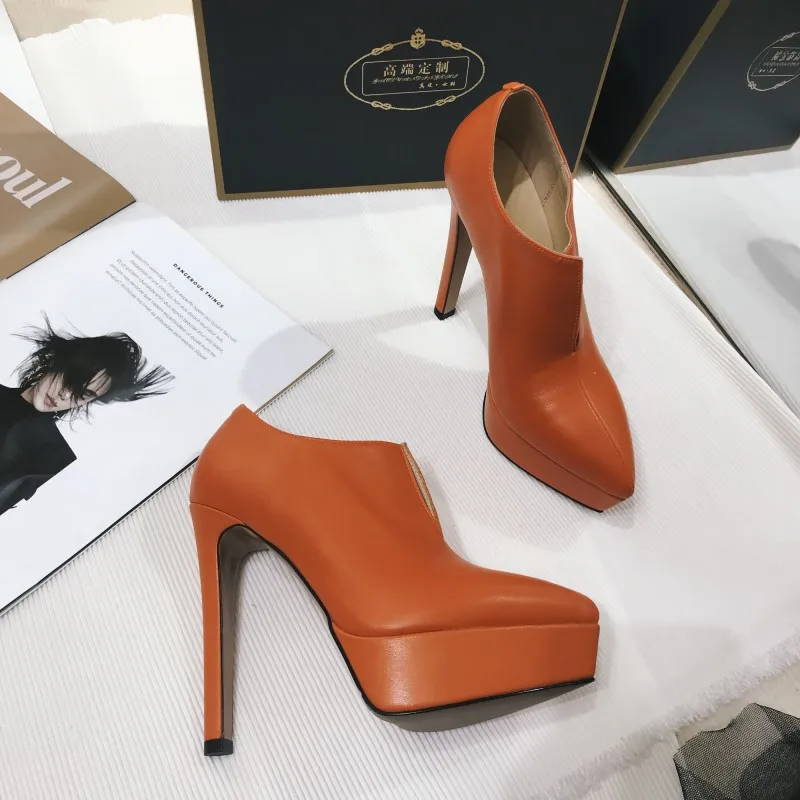 Новинка Весна 2022, водонепроницаемые туфли на очень высокой платформе, на тонкой шпильке с глубоким носком, женские кожаные и телесные ботинки с острым носком