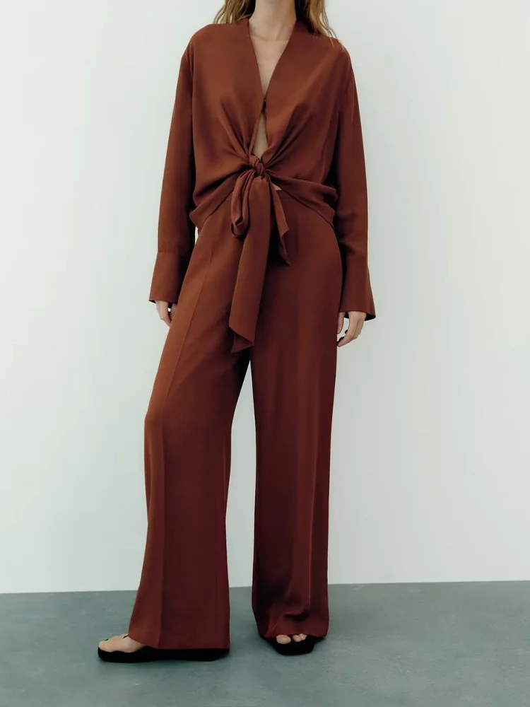 Новинка Весна 2023, свободные индивидуальные Широкие штаны в западном стиле, универсальные модные бриллиантовые брюки Ruili, комплект из рубашки и брюк