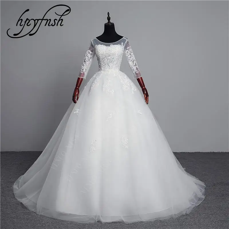 Новинка Модные Простые кружевные свадебные платья со шлейфом три четверти милое элегантное женское платье