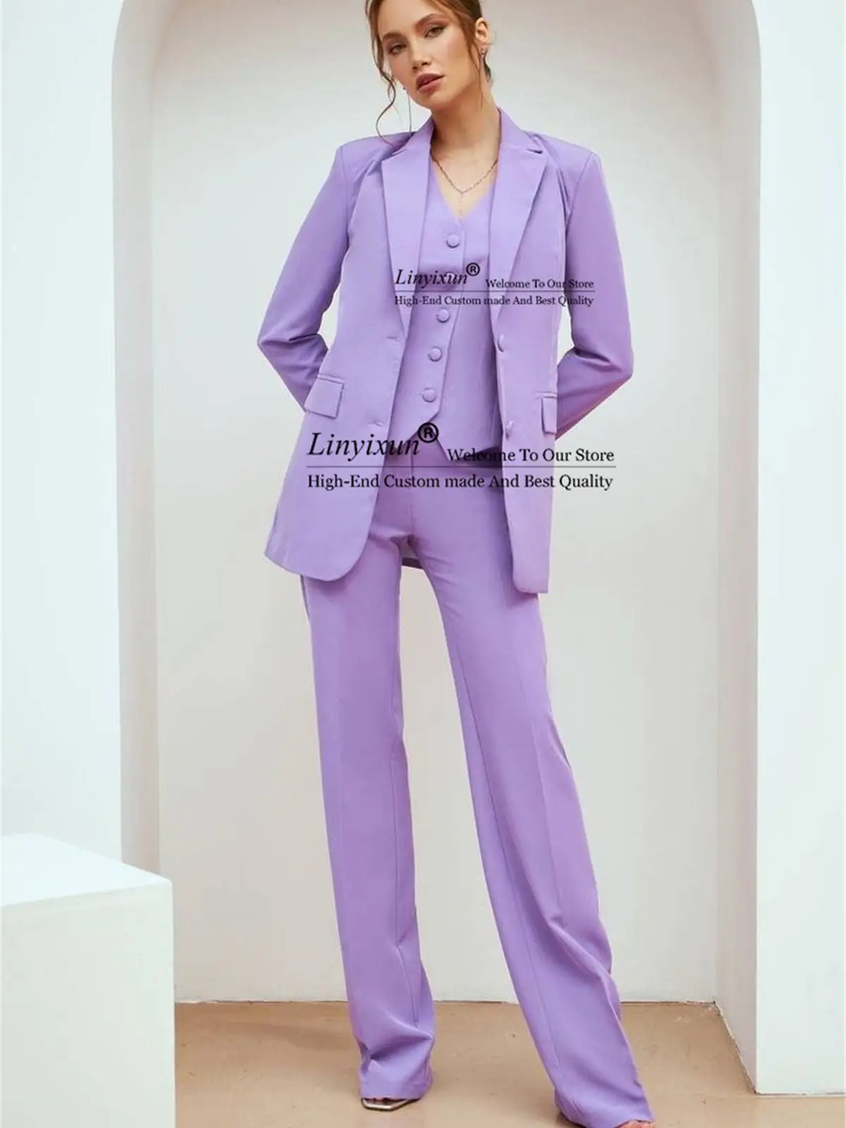 Новинка, Модные фиолетовые облегающие брючные костюмы, повседневная одежда, вечерняя Женская официальная одежда, 3 предмета