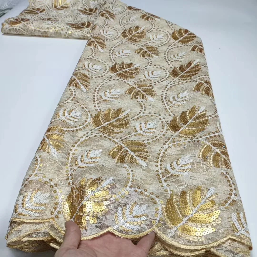 LACE French Tulle Beads African Lace Fabric 2021 High Quality Embroidery Net Materials 5 Yards Nigerian Lace Fabric Sew 0200