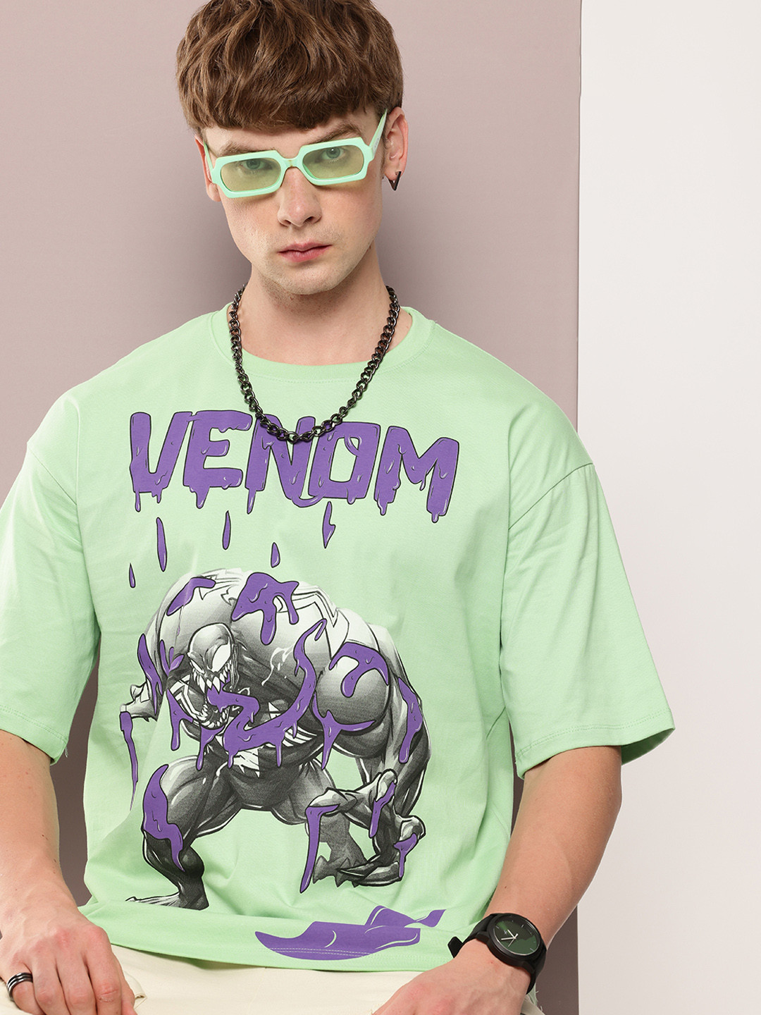Kook N Keech Marvel Printed Drop-Shoulder Sleeves Oversized Pure Cotton T-shirt, Green