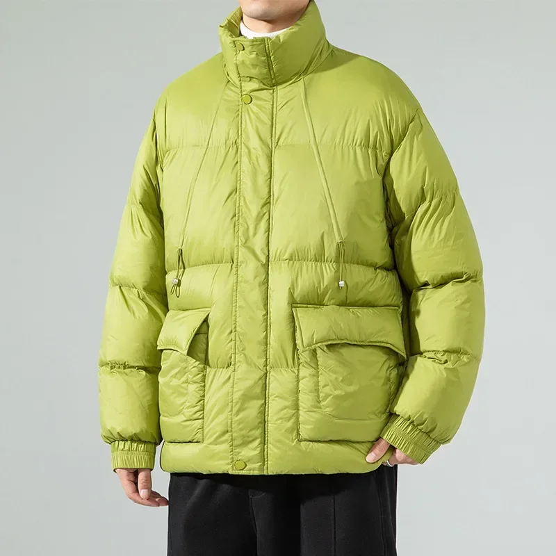 Новинка Осень/Зима 2023 Мужская свободная и утолщенная однотонная хлопковая одежда с воротником-стойкой