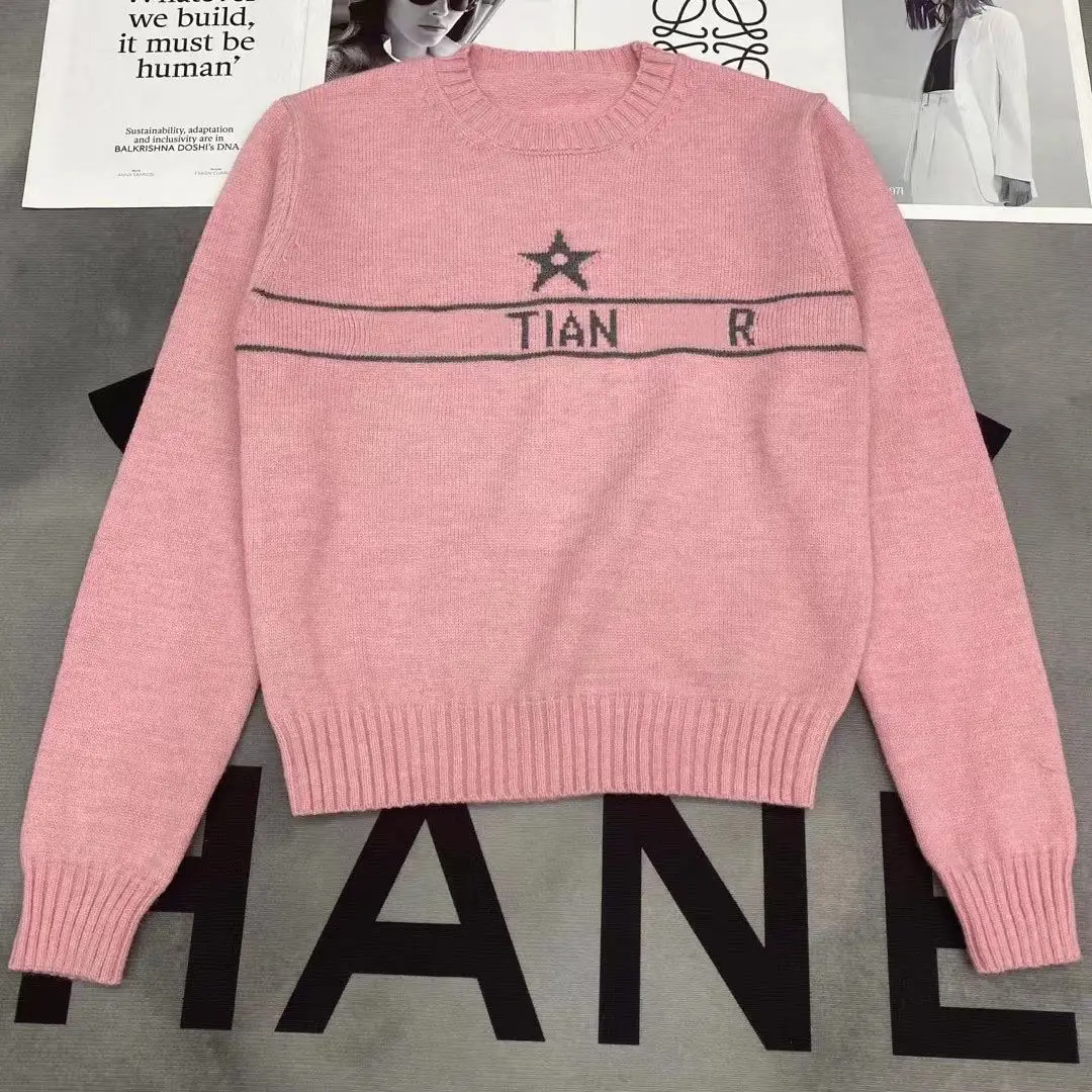 Новинка Осень/Зима 2023, вязаный свитер Lucky с длинным рукавом и надписью «пять звезд»