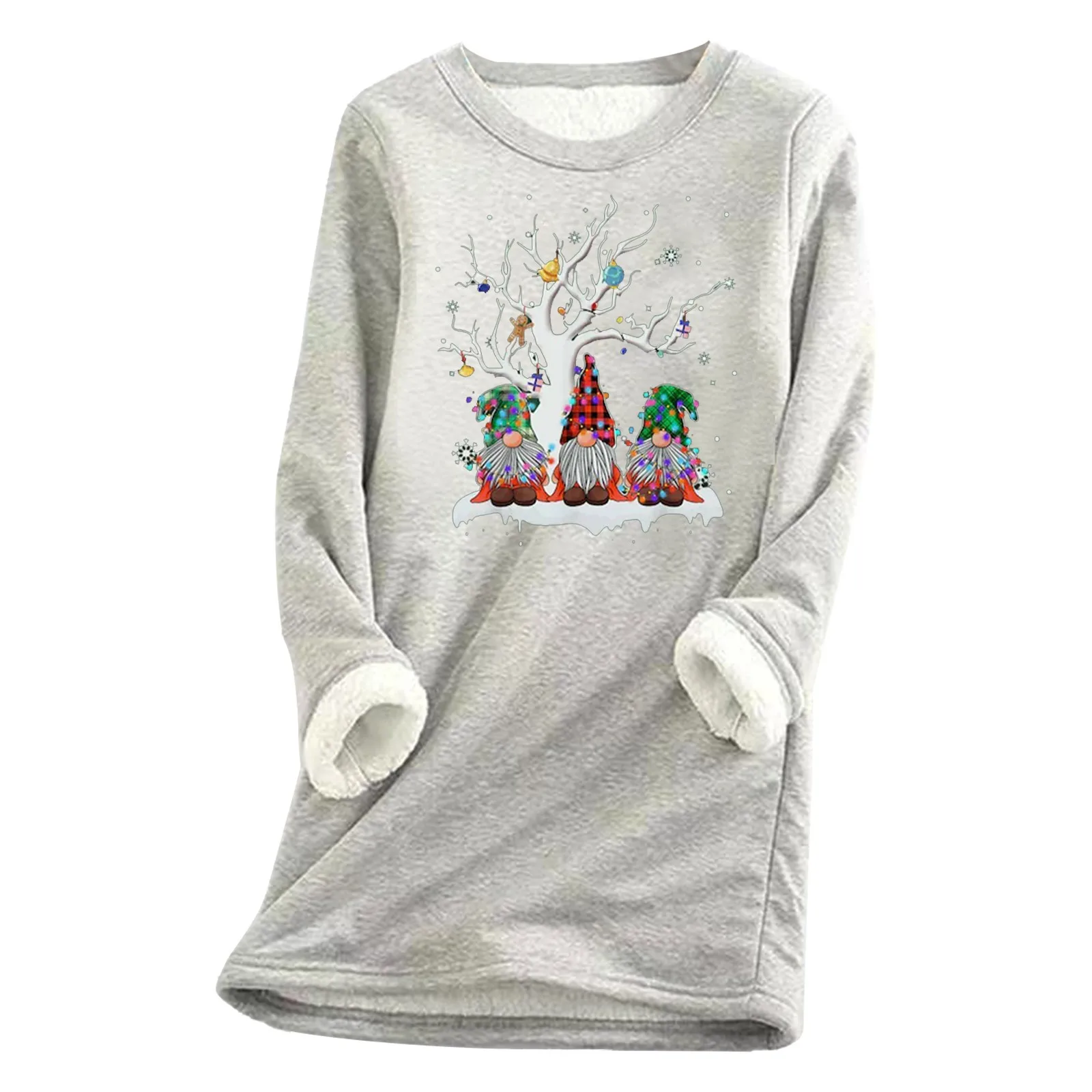 Новинка Осень-зима Флисовая теплая нижняя рубашка Женский свитшот с рождественским принтом подходящая рубашка Топ с длинным рукавом для же...
