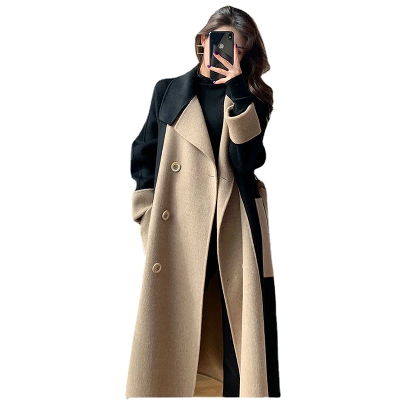 Новинка Осень-зима 2023 высококачественное двухстороннее шерстяное пальто до колен Корейская свободная Мода