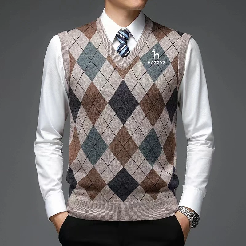 Новинка Осень-зима 2023 г. От Hazzys, мужской жилет с V-образным вырезом, мужской вязаный Повседневный сетчатый свитер в полоску без рукавов, модная мужская одежда