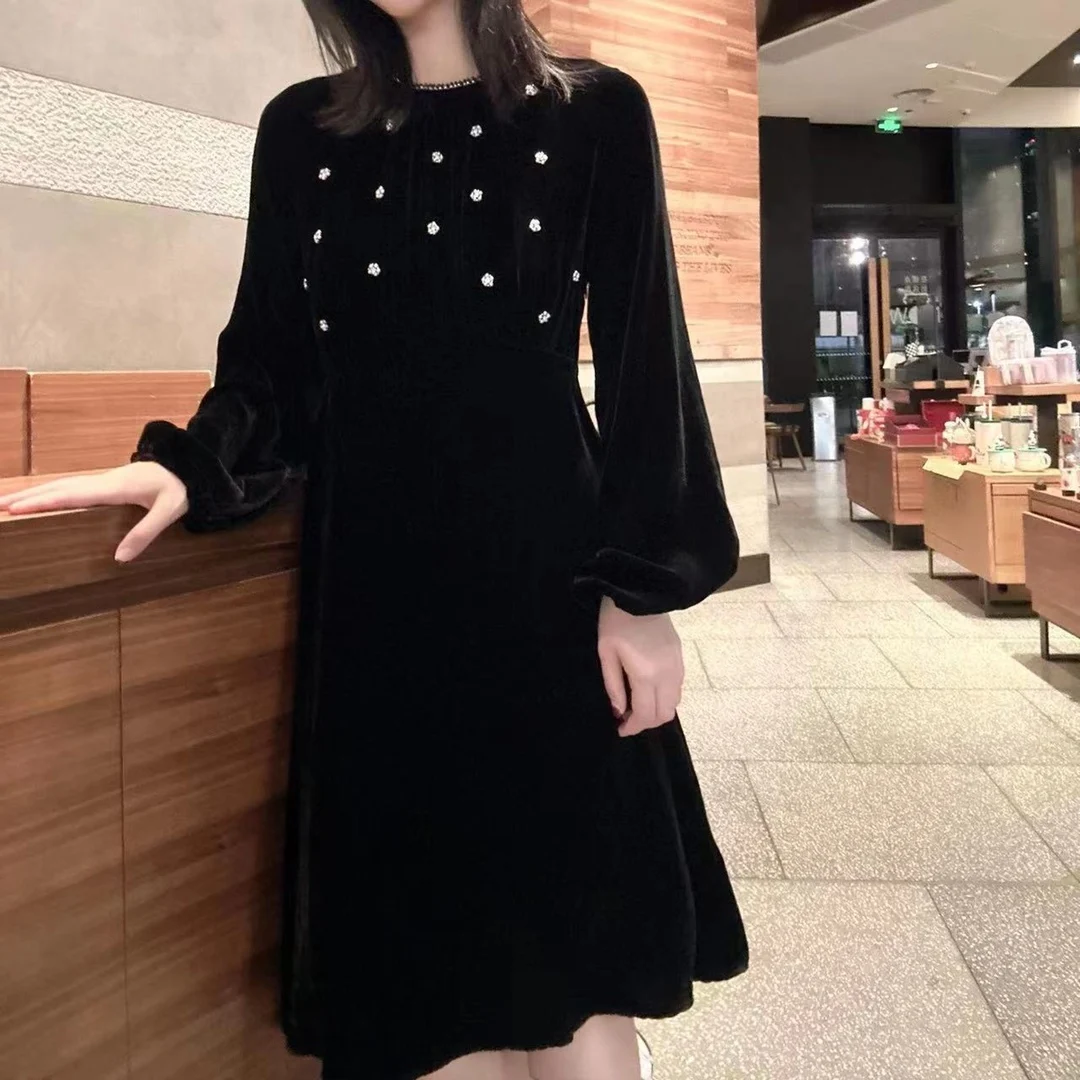 Новинка Осень-зима 2023 женское бархатное платье со стразами на груди со звездами 1003