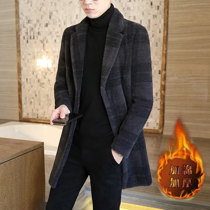 Новинка Осень-зима 2023, мужской бутик, Высококачественная утепленная модная красивая куртка средней длины из норкового бархата, топы