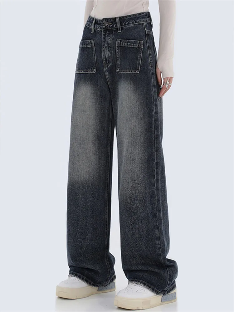 Новинка Осень 2022, женские джинсы Y2k с широкими штанинами, джинсы для мам с высокой талией, корейская мода, винтажная уличная одежда, свободные джинсовые брюки