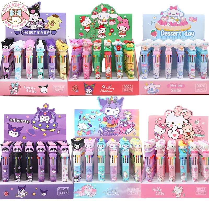Новинка Шариковая ручка Sanrio 36 шт. 10 цветов Kuromi Мультяшные студенты письменные принадлежности 0,7 ручная учетная запись ручки для рисования в коробке оптовая продажа