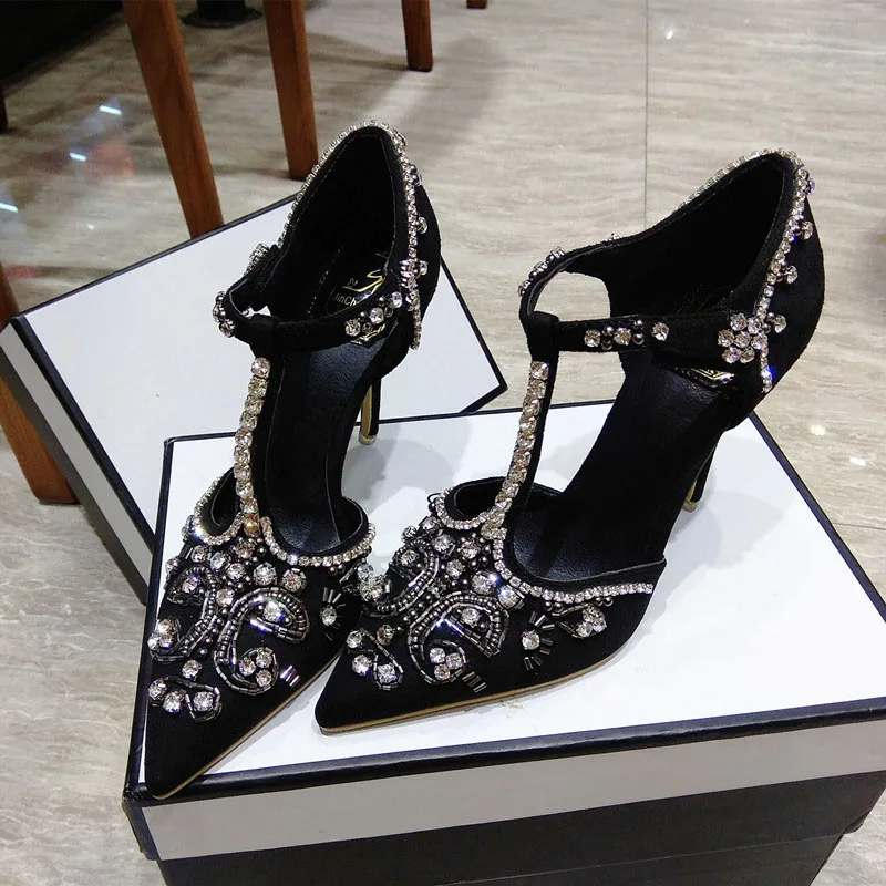 Новинка весна-лето 2022 пикантные туфли стразы в форме буквы T с острым носком на высоком каблуке-шпильке со стразами на среднем каблуке