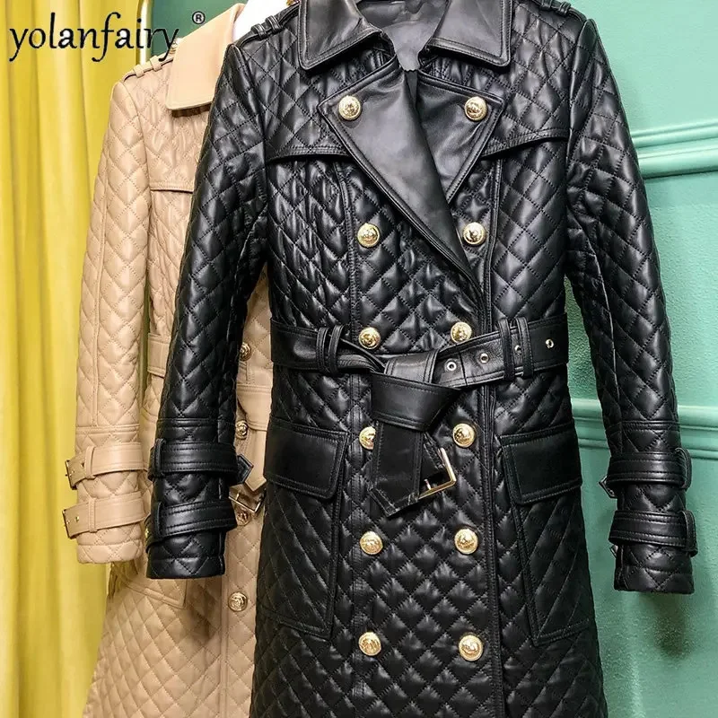 Новинка весна-осень 2024 куртка из натуральной кожи женский тренчкот средней длины из овчины элегантная ветровка