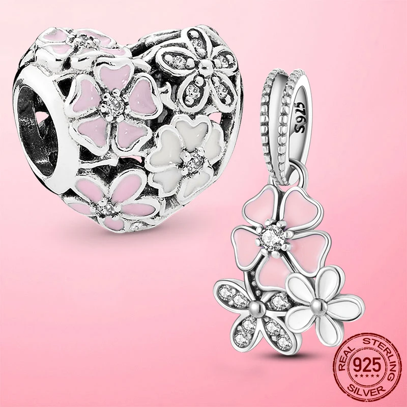 Новинка весны 925 Серебряные бриллиантовые цветочные лепестки сердце шармы бусины подходят для оригинального браслета Pandora DIY Изготовление ювелирных изделий