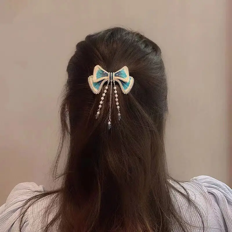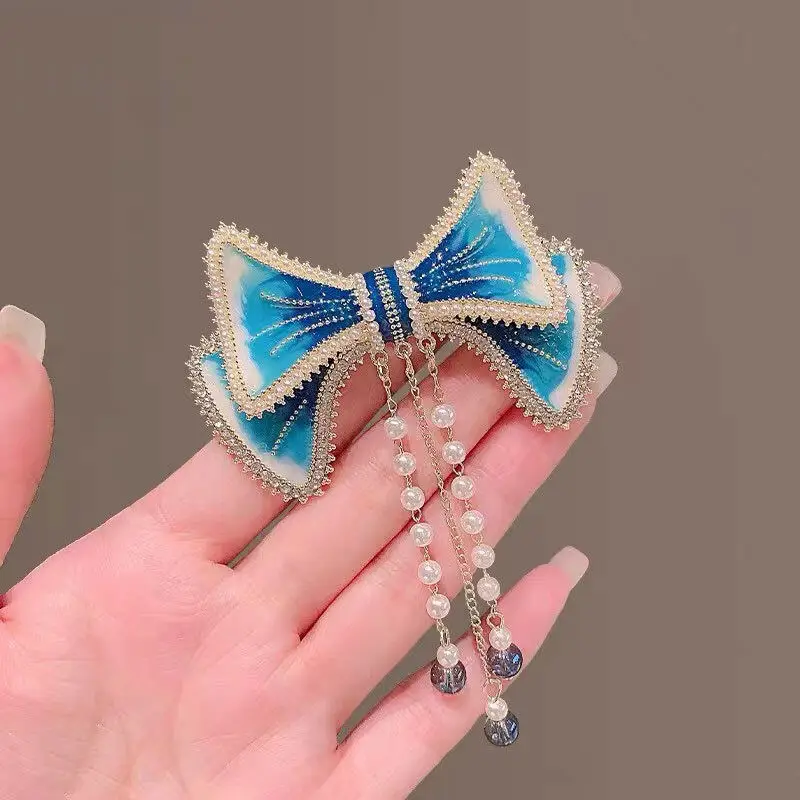 Новинка жемчужный бант синяя заколка для волос с бахромой Шпилька заколка для волос аксессуары для волос подарки украшение для волос