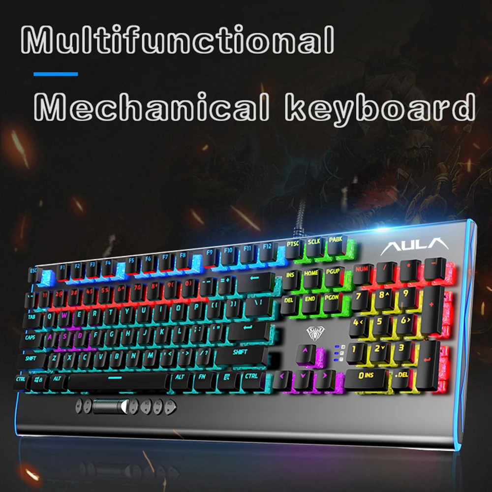 Новинка, игровая клавиатура для ноутбука, 104 клавиш, мультимедийная вращающаяся кнопка, Механическая игровая клавиатура, клавиатура с макро...