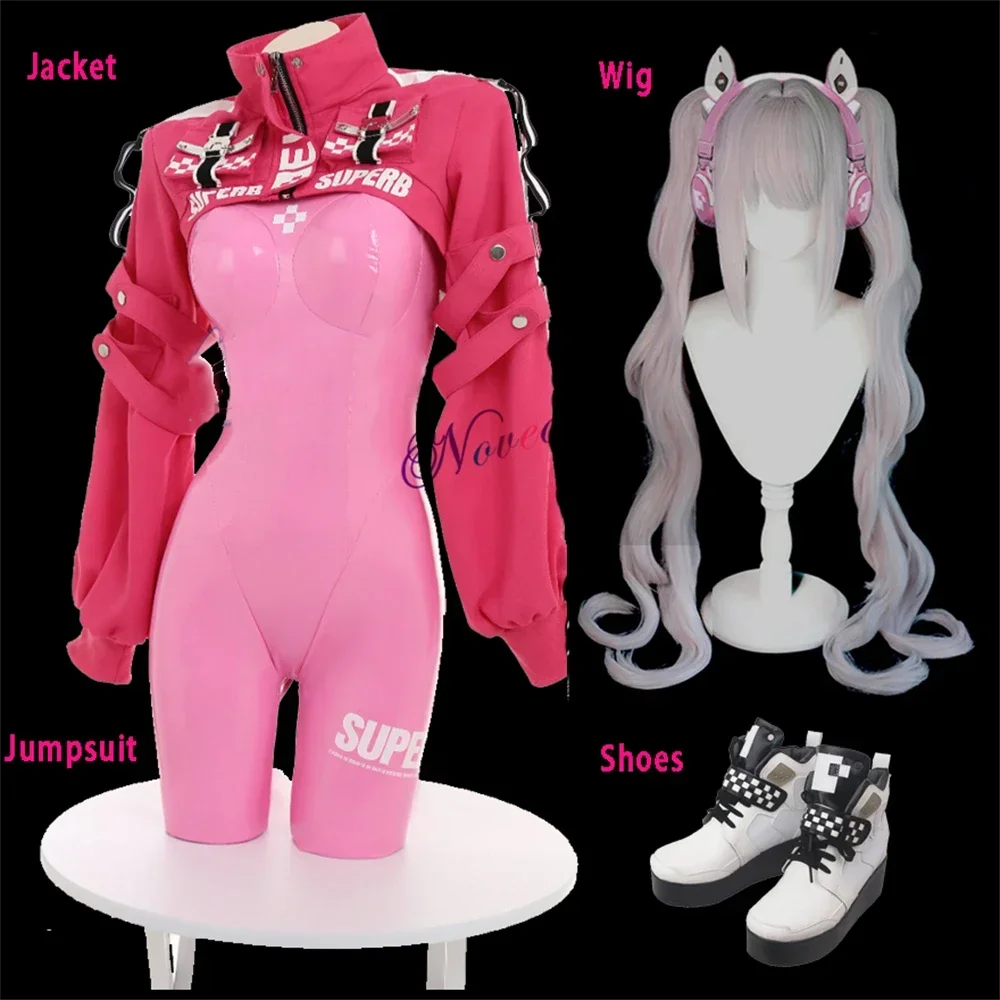 Новинка, костюм для косплея из игры Nikke Alice, обувь с париком, сексуальный латексный костюм кошки, боди, розовый комбинезон, куртка, костюм для женщин и девочек