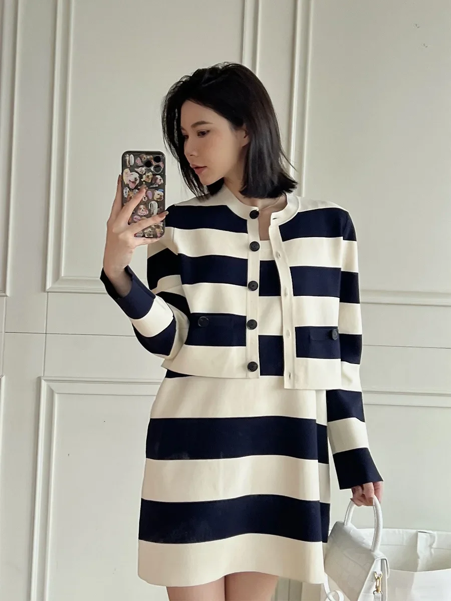 Новинка лета, женское трикотажное платье-жилет в полоску/стильная куртка