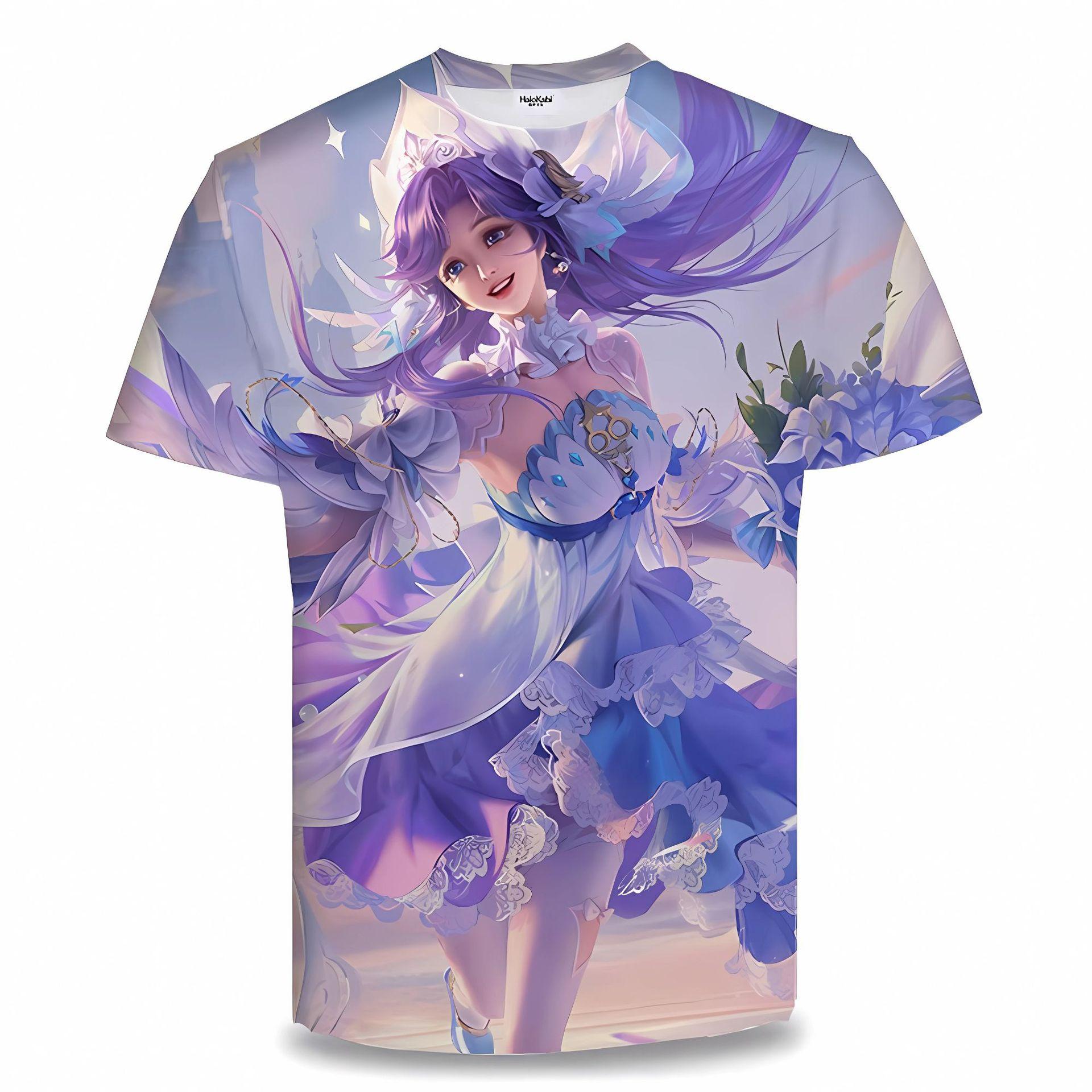 Новинка лета, круглый воротник King Rong Yao с 3D принтом, белый журавль, богиня Лян, с короткими рукавами, Big Joe XS