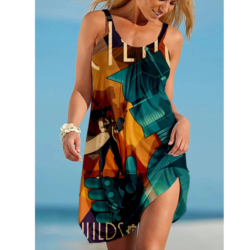 Новинка лета 2022, модное женское платье на бретельках, юбка с круглым вырезом и рисунком таинственной звездной ночи, пикантное вечернее плат...