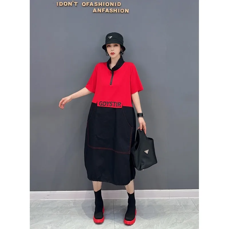 Новинка лета 2023, корейская мода, Трендовое платье с воротником-стойкой, подходящее по цвету
