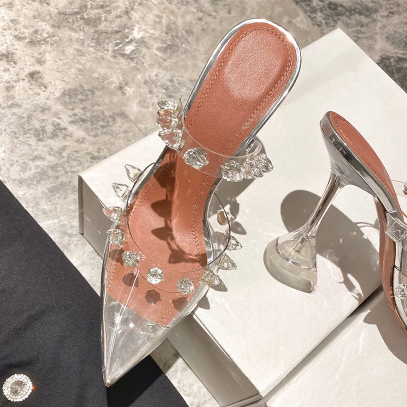 Новинка лета 2023, модные Универсальные пикантные банкетные босоножки с острым носком, босоножки с кристаллами и тапочки, прозрачные босонож...