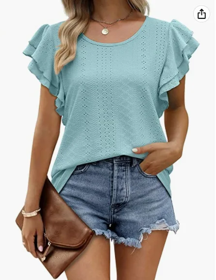 Новинка лета 2023, Amazon, женская одежда в европейском и американском стиле, двухслойный женский топ с оборками и коротким рукавом