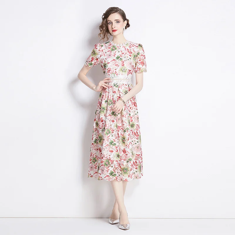 Новинка лета 2024, платье с коротким рукавом и трехмерным вырезом, облегающая Модная элегантная большая юбка с принтом