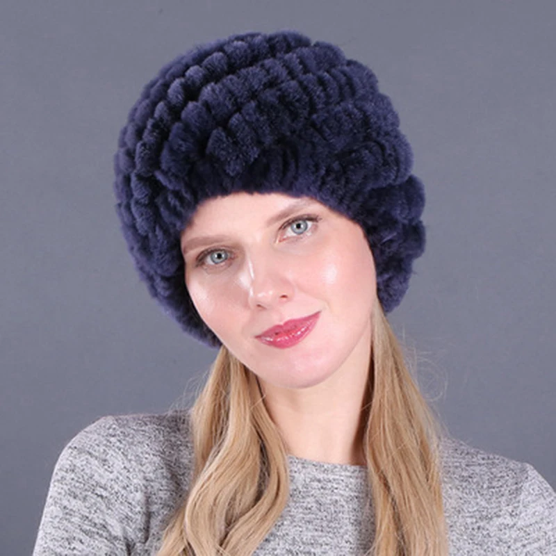 Новинка, милая Дамская берет, женская трикотажная Шапка-бини, женская зимняя трикотажная шапка Настоящий мех кролика 100%
