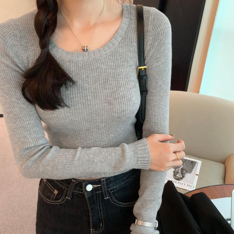 Новинка осени и зимы, новый облегающий и универсальный круглый вырез, эластичный трикотажный пуловер с длинными рукавами для женщин XL