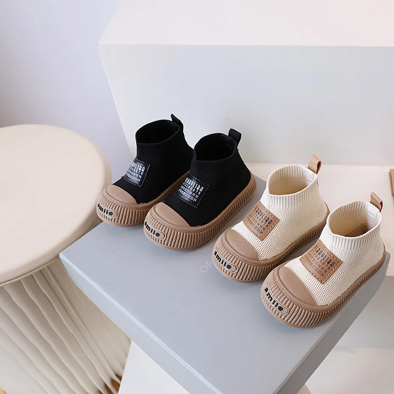 Новинка осени 2023, детские ботинки-носки, модные вязаные ботинки с высоким берцем для девочек, детская однотонная мягкая обувь, дышащие ботинки принцессы