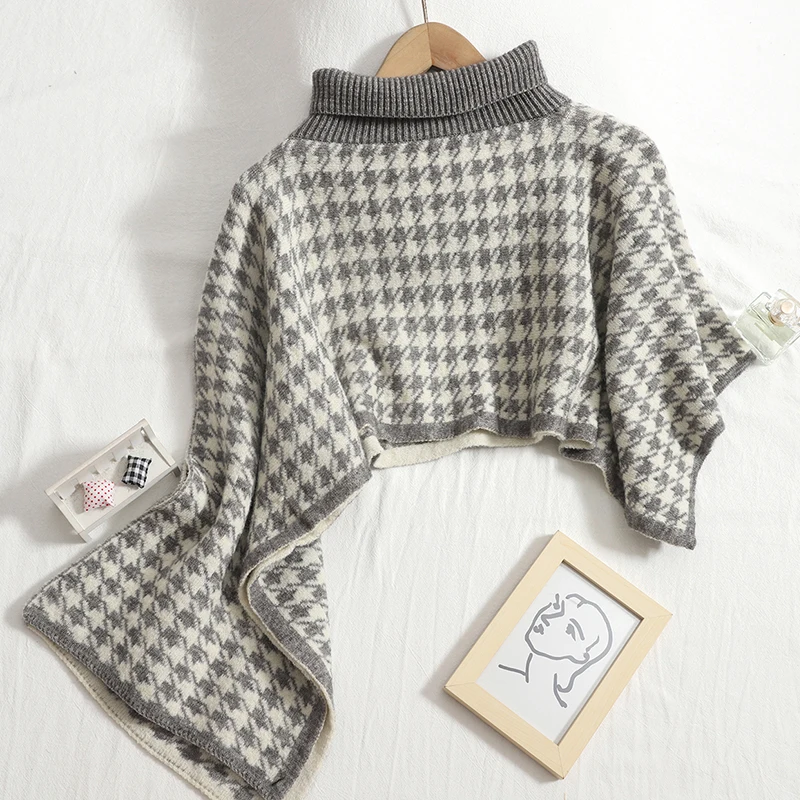 Новинка осенний Асимметричный трикотажный клетчатый нагрудник с воротником-хомутом контрастных цветов