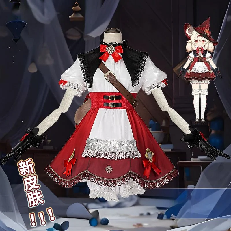 Новинка от Genshin Impact Klee, искусственная кожа, красное платье, Аниме игра, косплей Genshin Impact Kawaii, для женщин
