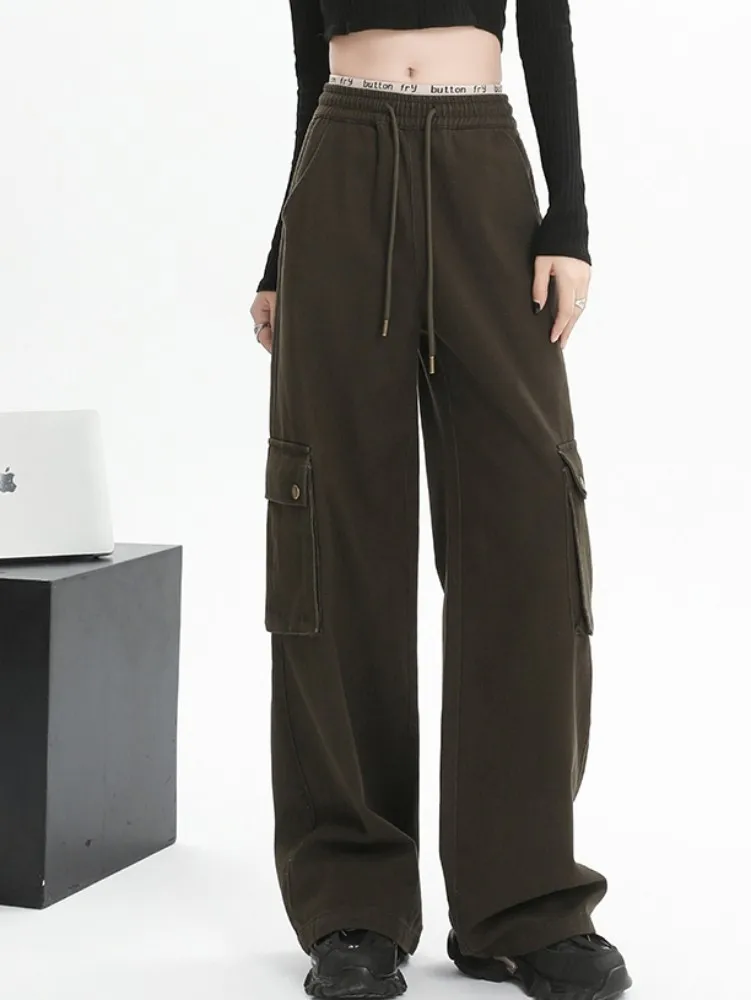Новинка от ZHISILAO, женские повседневные прямые широкие брюки-карго Y2k, весна 2024, уличная одежда
