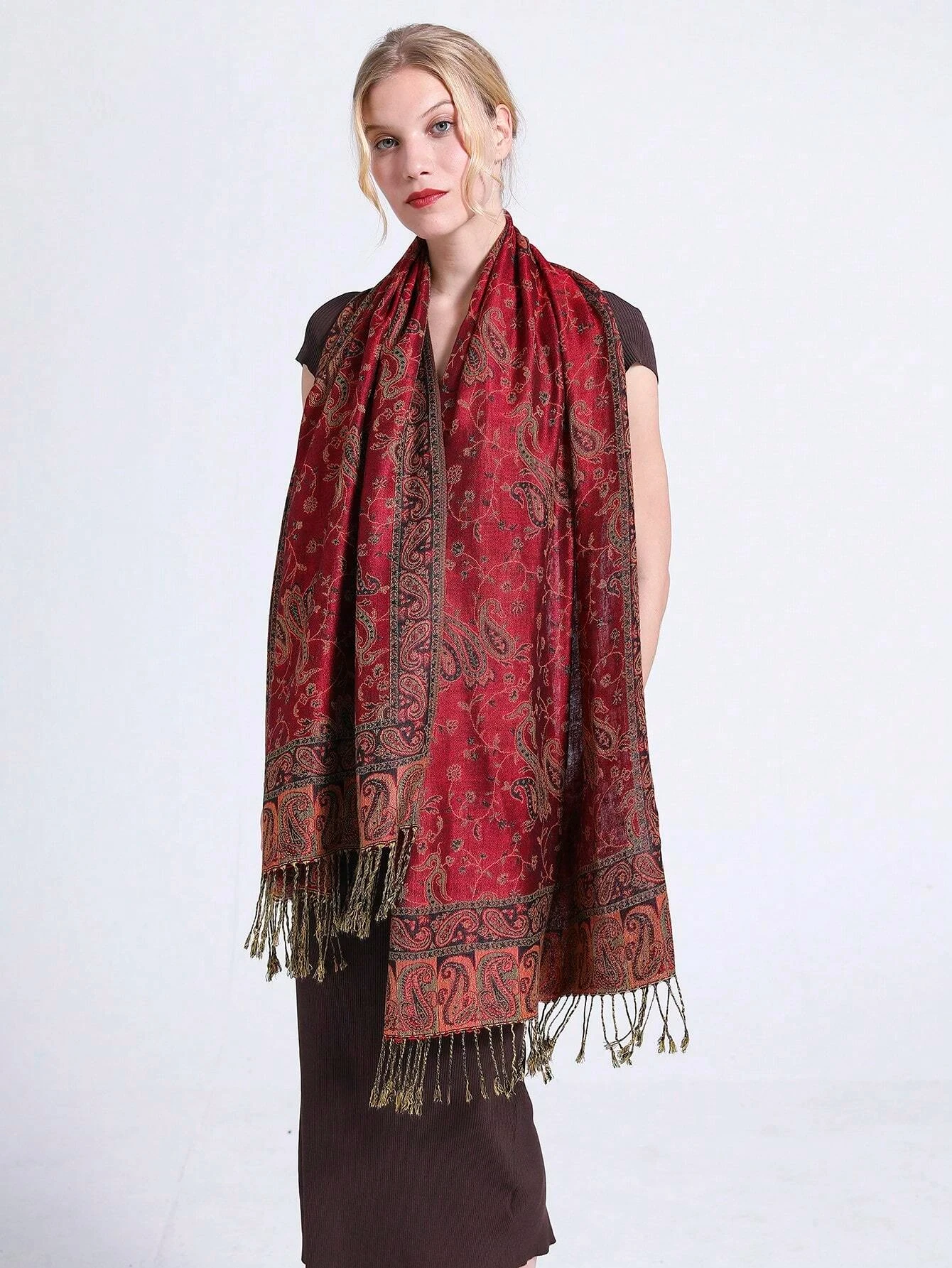 Новинка, роскошная шаль из искусственной кожи 70x200 см, с рисунком Пейсли, жаккардовые цветы, многослойные, двусторонние, Классические кисточки для женщин