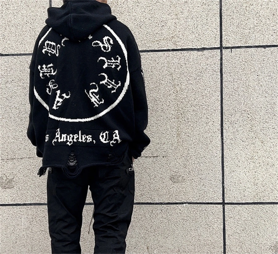 Новинка, свитер на санскрите Ask с надписью, повседневный Свободный Мужской и Женский вязаный свитер с капюшоном