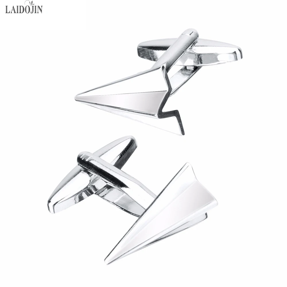 Новинка, серебристые запонки LAIDOJIN в виде самолета для мужской рубашки, запонки, модные мужские украшения