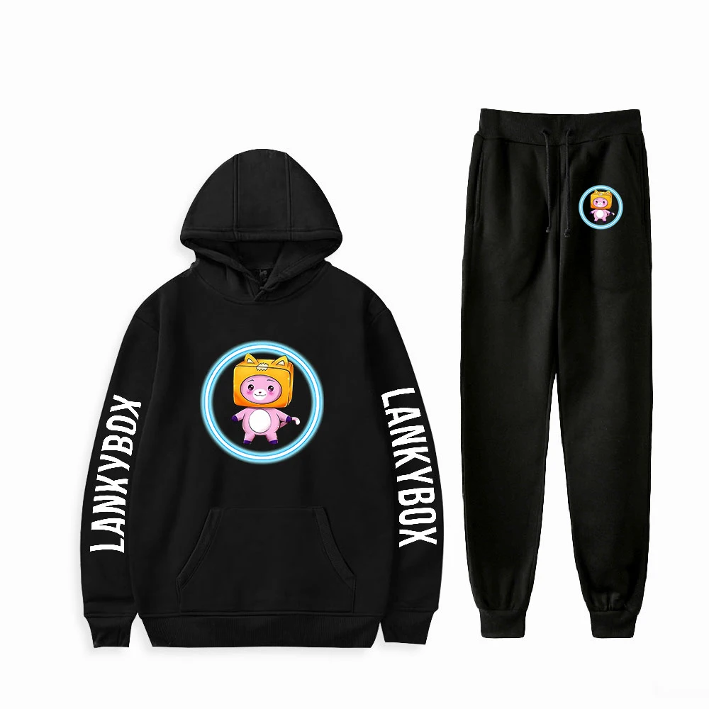 Новинка, толстовка с капюшоном и штаны для бега в стиле аниме Lankybox, комплекты уличной одежды для мужчин и женщин