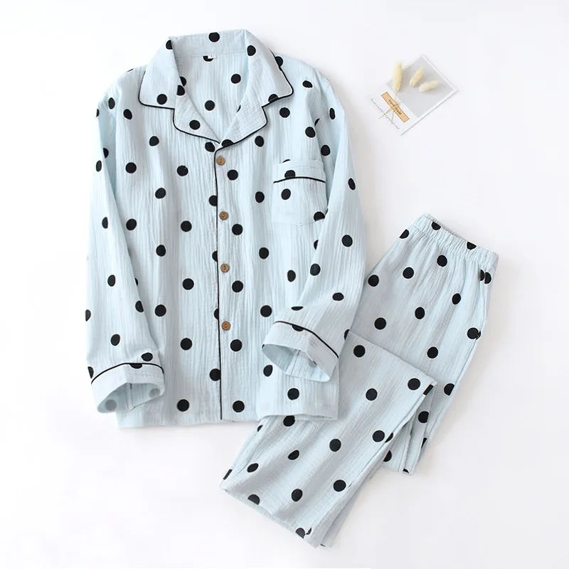 Новинка, хлопковый костюм для отдыха, осенние мужские и женские брюки в горошек с длинным рукавом, кардиган, Пижамный костюм, свободная Ночн...