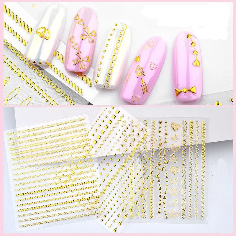 Новинка, 1 лист 3D наклеек для ногтевого дизайна, 12 видов, золотой цвет, металлическая Смешанная форма на ногтях, наклейка с одуванчиками для маникюра Z059