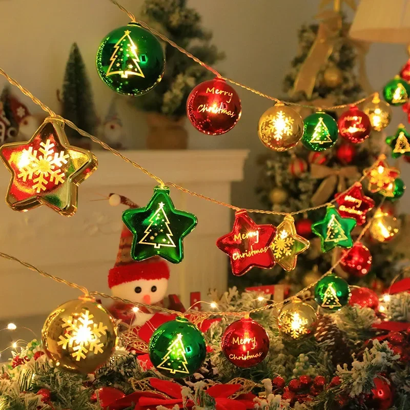 Новинка 1,5/3 м с надписью "Merry Christmas", светодиодная лампа, гальваническое покрытие, снежинка, пятиугольная звезда, Рождественская елка, подвесные украшения для комнаты
